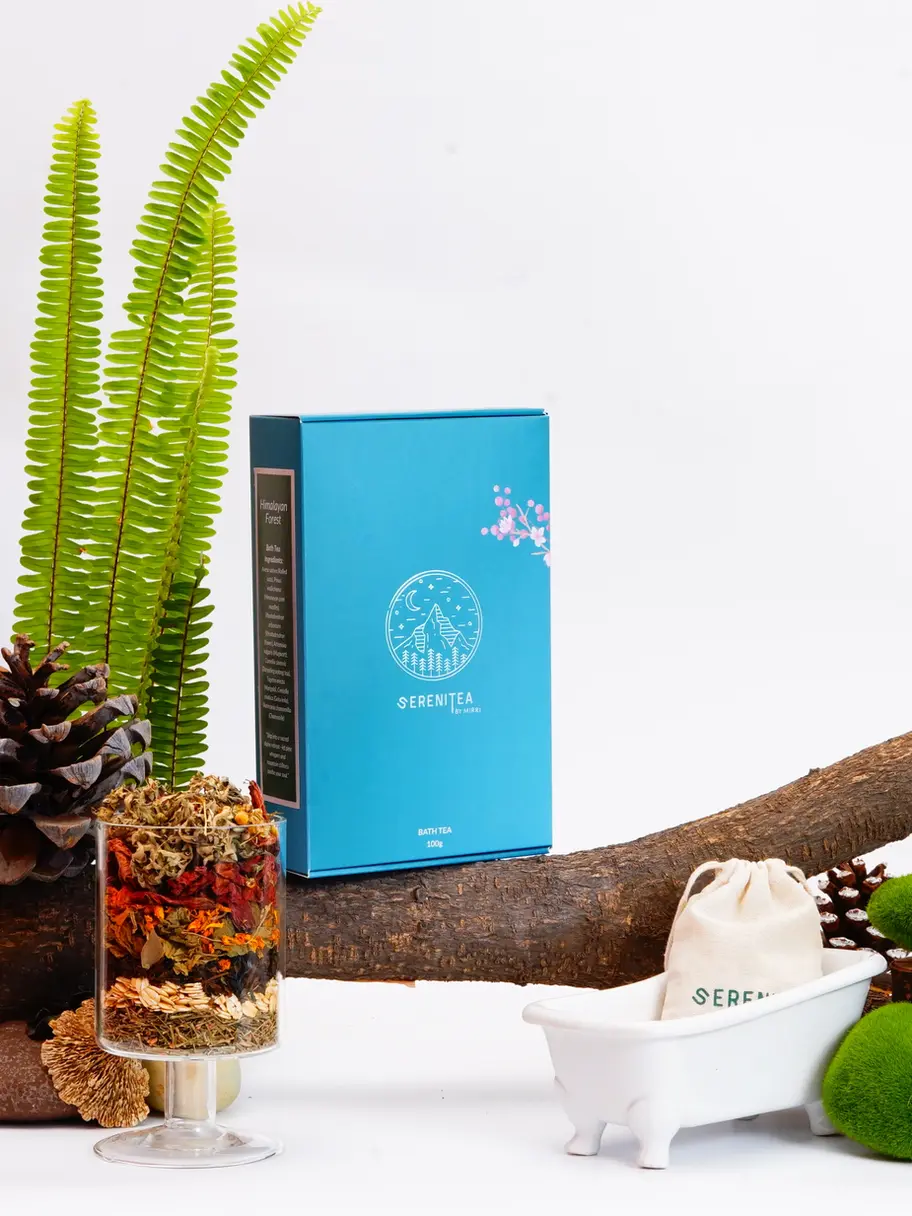 Step into a mist-laden Himalayan forest where resinous pine, wild mugwort, and sacred Himalayan Rhododendron flower (popularly known as Sanjeevani flower) cleanse and ground the body. This deeply detoxifying bath tea perfect for mental clarity, inflammation relief, and overall skin vitality. Darjeeling oolong and gotu kola support circulation and renewal, leaving the body light, grounded, and quietly revived—like breath after rain in the high mountains